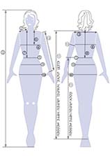 Maßtabelle 1 für Top - Bluse - Kleid - Jacke - Mantel: Ein individuell auf Sie zugeschnittener Maßschnitt erfordert mehr als nur die Körpergröße und einige Weitemaße. Es gibt z.B. kleine Größen mit langen Taillen und große Größen mit vergleichsweise kurzen Taillen; ebenso wie große Größen mit schlanken Armen und kleine Größen mit kräftigeren Armen. Wichtig für einen perfekt passenden Schnitt sind außerdem individuelle Faktoren wie Hohlkreuz, größerer oder kleinerer Busen etc. Je nach Modell werden wir Sie informieren, welche Daten für Ihr individuelles Schnittmuster benötigt werden.